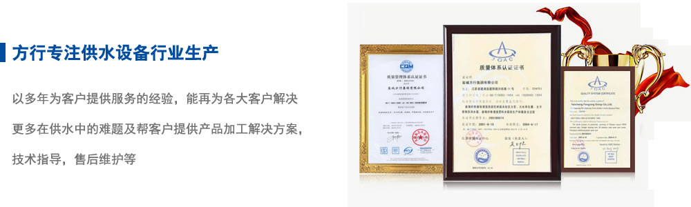 鹽城方行集團(tuán)有限公司秉承“務(wù)實(shí)、誠信、拼搏、創(chuàng)新”的企業(yè)精神,經(jīng)歷了近數(shù)十年的歷程取得了跨越式的發(fā)展。高起點(diǎn)才會有更高的品質(zhì),優(yōu)雅的環(huán)境,先進(jìn)的設(shè) 備,高效的團(tuán)隊,造就了一批批優(yōu)質(zhì)的產(chǎn)品。堅持質(zhì)量、用戶至上的宗旨,公司全面通過了ISO國際質(zhì)量體系認(rèn)證,是制造供水成套設(shè)備廠家 之一。經(jīng)悉心打造,已享有較高的知名度,產(chǎn)品遍布全國,不斷研發(fā)全新產(chǎn)品,滿足消費(fèi)者的需求 | |